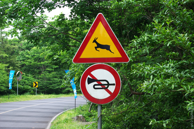 제주도의 표지판. 사슴 주의.