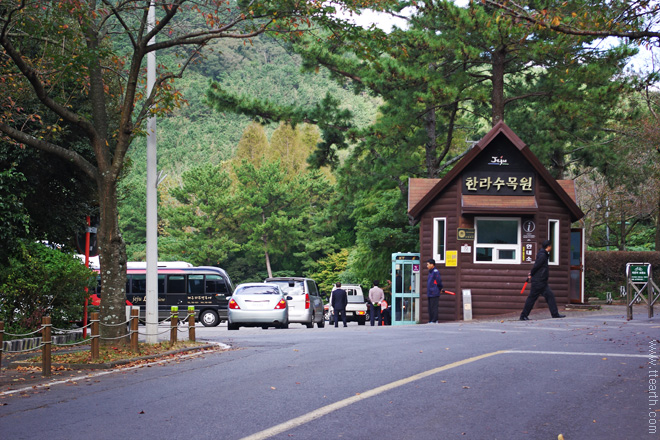 제주 시외 버스 터미널에서 740번 시외 버스를 타고 '한라 수목원' 버스 정류장에 내려서 600m정도 걷는다. 740번 시외 버스는 차편이 많지 않다. [참조]> [제주 시외 버스 터미널], [740번 노선 / 시간표]