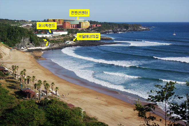 중문 해변. 하얏트 호텔 오른쪽 언덕이 쉬리의 언덕이다.