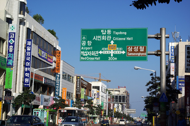 제주 공항에서 500번 버스를 타고 '삼성 초등학교' 버스 정류장에 내린다.
