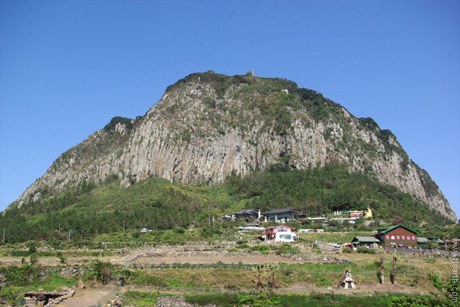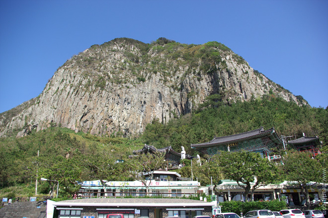 주차장에서 본 산방산.