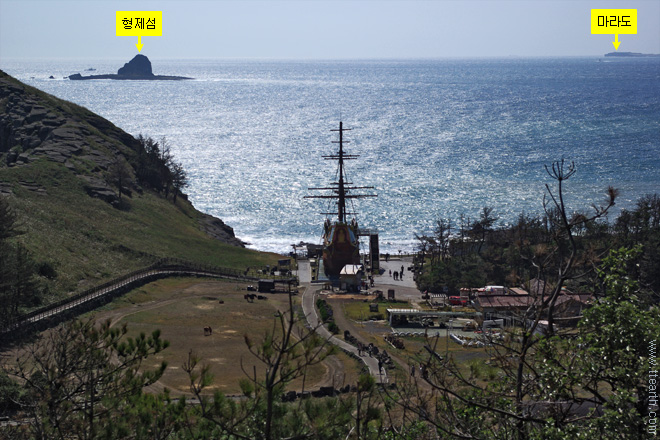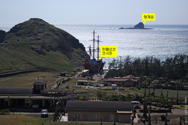 바닷가에 보이는 모형 범선이 하멜 상선 전시관이다.