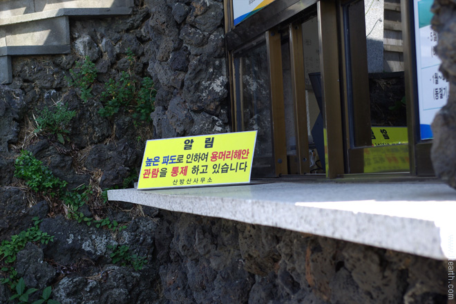 산방굴사는 태풍에 파손되어 올라갈 수 없었다. 파도가 높으면 용머리 해안은 출입이 통제된다. 용머리 해안에 가려면 미리 관리 사무소에 확인을 하는 것이 좋다. 출입이 통제되는 경우가 상당히 많기 때문이다.
