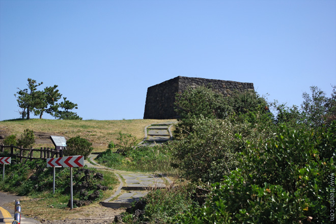 산방산 주차장 오른쪽에 연대가 보인다.