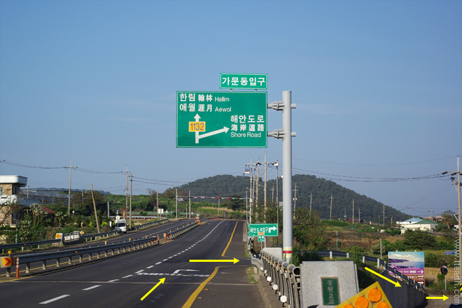 일주 서로(1132번 도로)를 따라 가다가 이호 테우 해변을 지나 가문동 입구 삼거리에서 오른쪽 해안 도로로 간다.