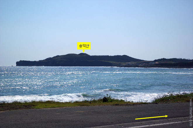 멀리 송악산이 보인다. 송악산 주차장까지가 형제 해안로이다.