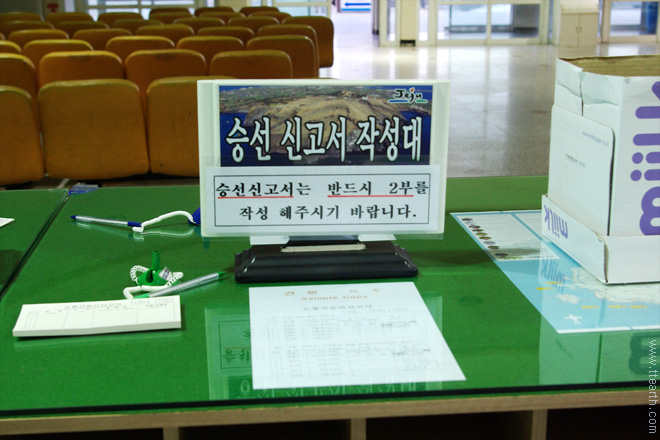 대합실에 승선 신고서가 비치되어 있다.