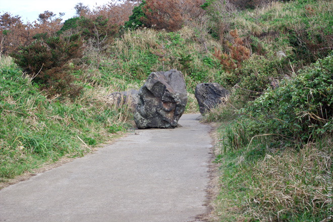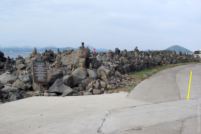 한반도여로 가는 길에 소원 기원 돌탑길이 있다. 사진은 뒤돌아 본 모습이다.