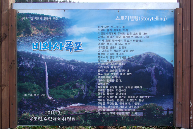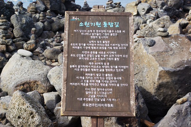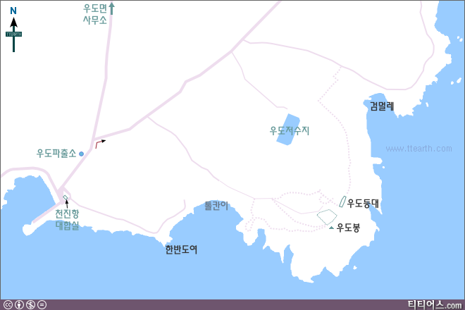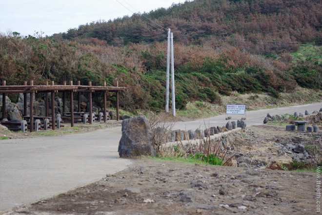 우도 천진항 뒷편 동쪽으로 가는 길이 한반도여, 톨칸이로 가는 길이다. 천진항 옆에 표지판이 있다.