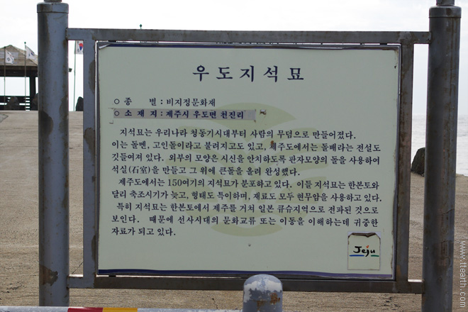 우도 고인돌(지석묘) 설명. 선사 시대부터 우도에 사람이 살았다는 증거이다.