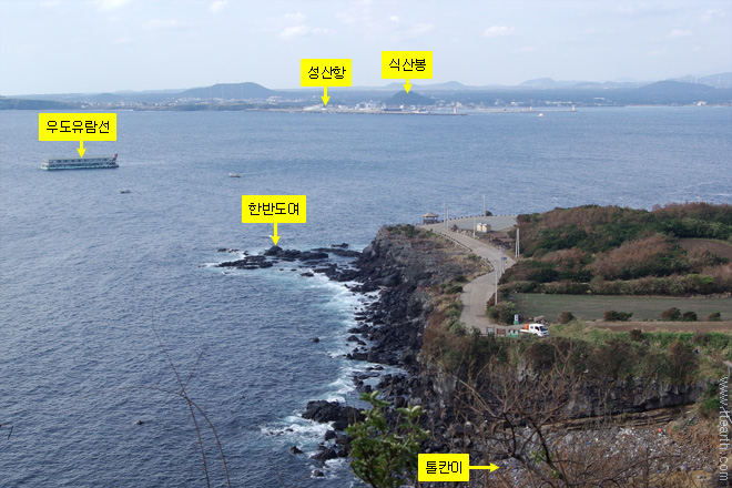 우도는 소가 누운 모습을 하고 있어 우도(牛島)라고 불리는데, 이 곳은 누운 소의 앞다리에 해당하는 곳이다.