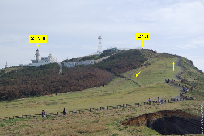 우도봉 정상은 보호 시설 때문에 막혀있다. 따라서 우도 등대로 가려면 내려갔다가 다시 등대로 올라가야 한다.