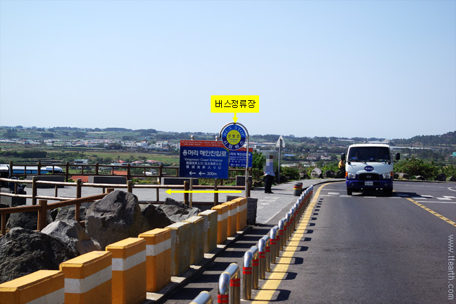산방산 버스 정류장 남쪽으로 300m를 가면 용머리 해안으로 갈 수 있다.