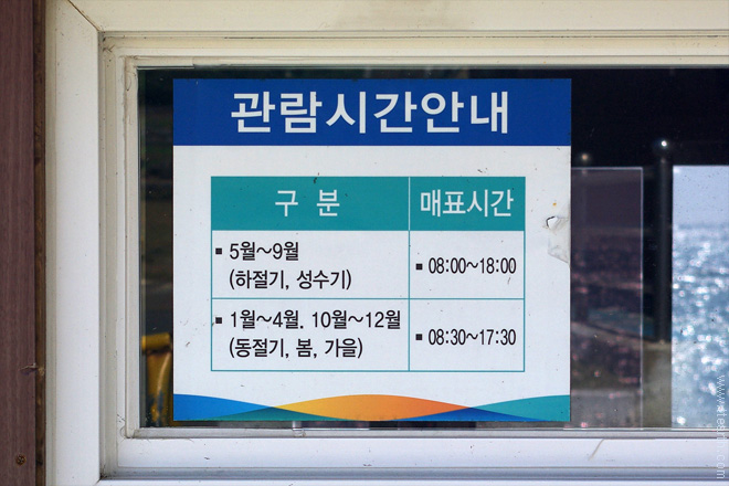 [여는 시간 (입장 마감 시간)] 08:00~18:00 (5월~9월) / 08:30~17:30 (10월~4월)